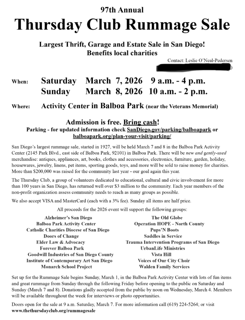 Shop for A Cause~ Part of the Proceeds from Thursday’s Club Rummage Sale will go to OHNC!